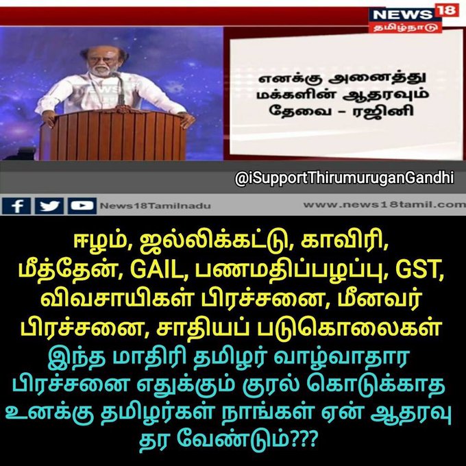 குசேலன் படத்துக்கு இழப்பீட்டுப் பணத்தைத் திரும்பத் தந்து, சினிமாவில் "மாற்று" காட்டிய திரு. @superstarrajini அதே "மாற்றை".. அரசியல் புகும் முன் காட்டி.. தானொரு வாய்ச்சொல் வீரர் அல்ல! போலி ஆன்மீகவாதி அல்ல! மெய்யாலும் மக்கள் பணி செய்ய வந்திருக்கேன்!!! எ. காட்டினாலே, பாதி வெற்றி! pic.twitter.com/ov6mTiVABu